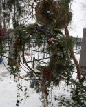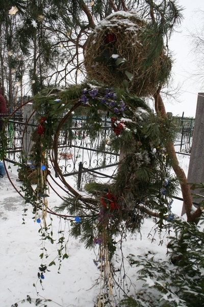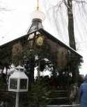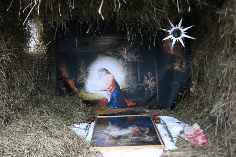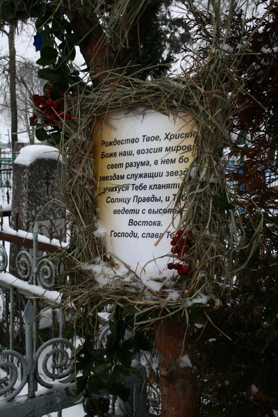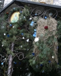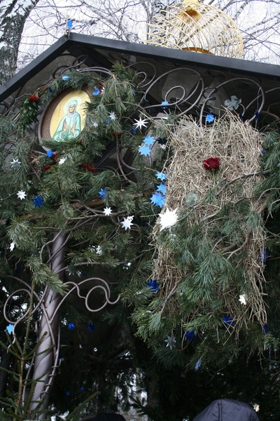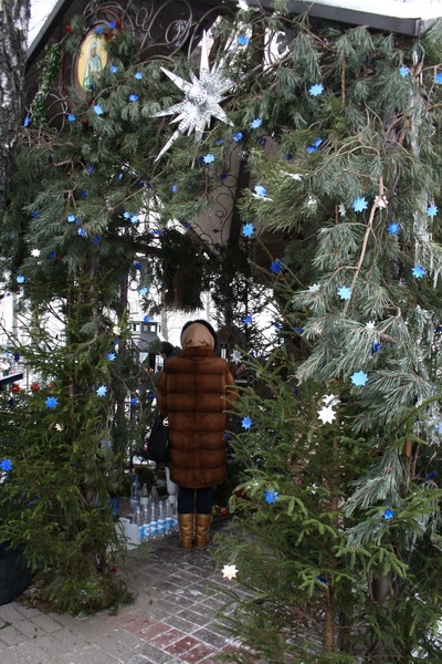К Рождеству Христову паломники с любовью и молитвой украсили матушкину сень природными материалами: елью, мхом, сеном и цветами.