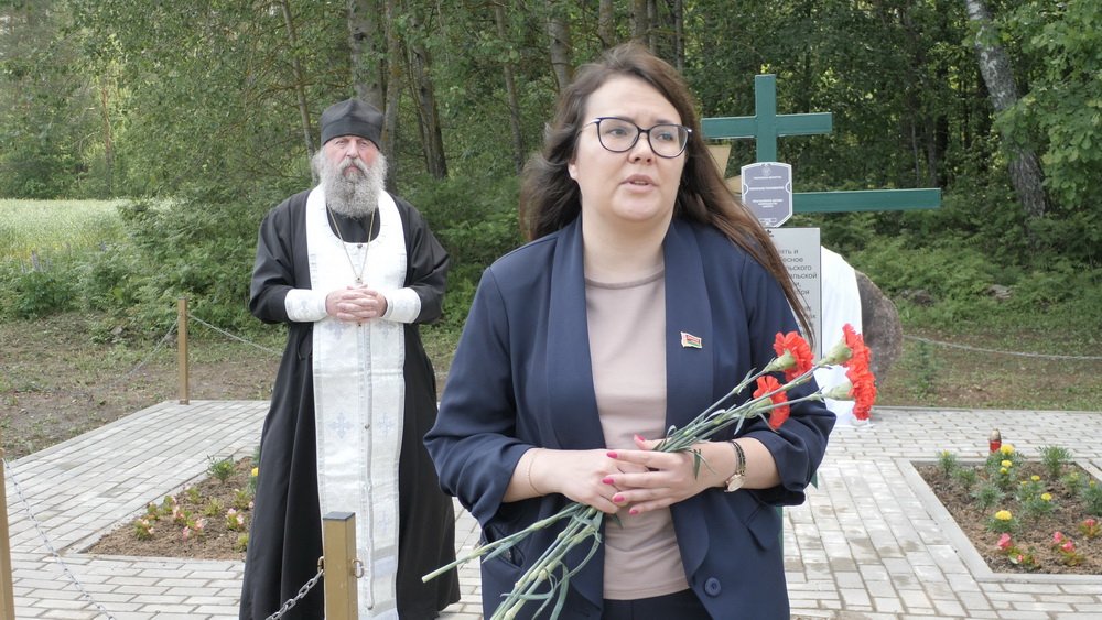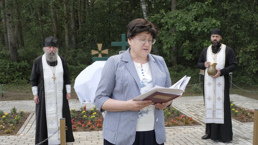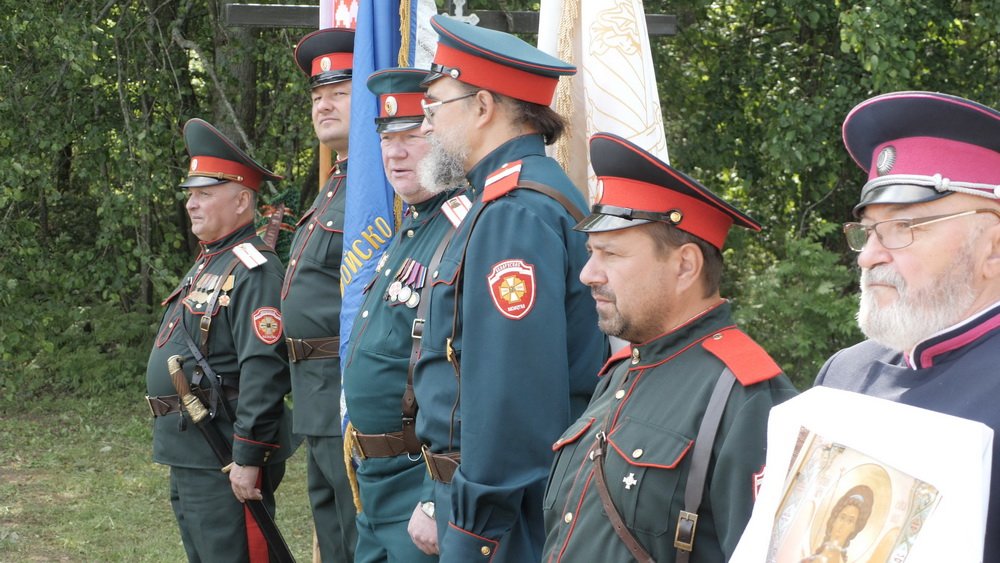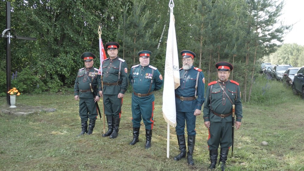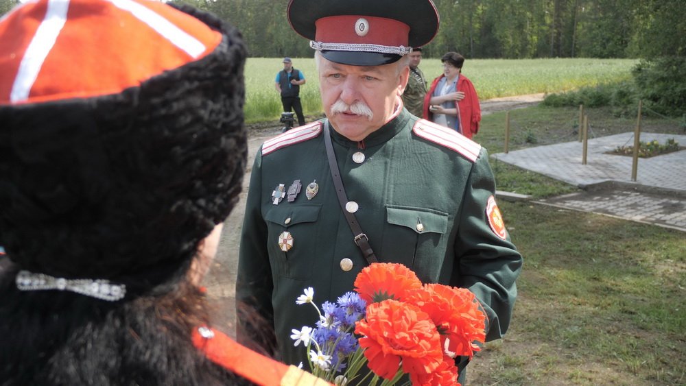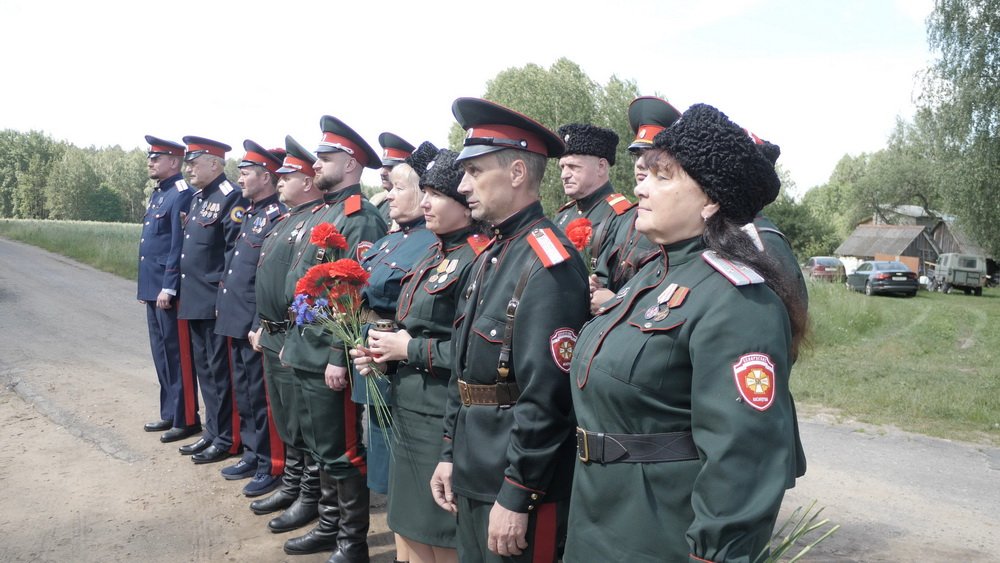 Жуменок Геннадий Аркадьевич, атаман Минского округа, казачий полковник: "Где мы здесь стоим, раньше просто росли елки, кусты и прочее-прочее. Мы обошли деревню, нашли старожилов из местных жителей и они подсказали, что в этом месте захоронены казаки. Даже были могилки, но со временем все это стерлось. Приезжают сюда экскурсии и мы хотели, чтобы здесь люди приходили поклонились павшим героям и узнавали историю своей страны, что люди издалека здесь служили, воевали и погибали".