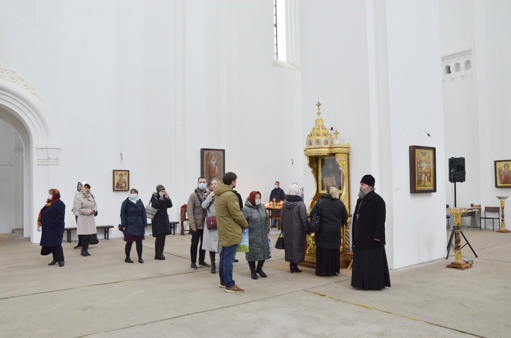 Гостей встретили настоятель прихода протоиерей Игорь Коростелёв и руководитель Социальных мастерских, кандидат психологических наук Марина Кравцова. Настоятель рассказал об основании и жизни прихода, о строительстве соборного Радосте-Скорбященского храма и ознакомил с деятельностью Социальных мастерских. К слову, в Мастерские часто приходят педагоги, работающие в классах духовно-нравственной направленности. Особенно полезны такие экскурсии для учителей, работающих в интегрированных классах, где вместе со здоровыми школьниками учатся ребята с ограниченными возможностями.