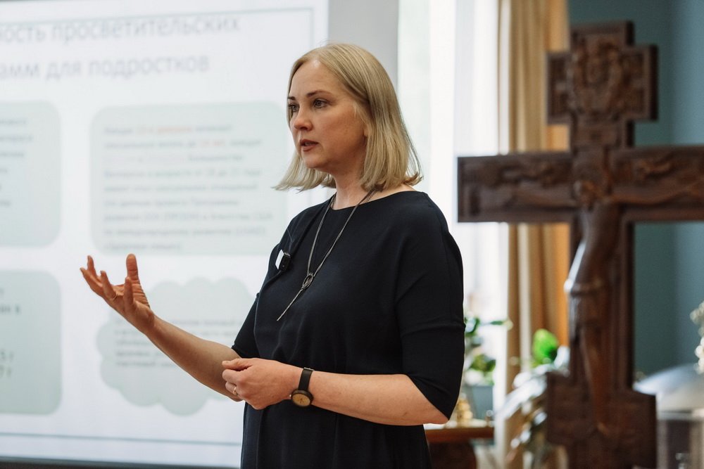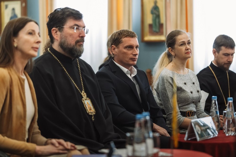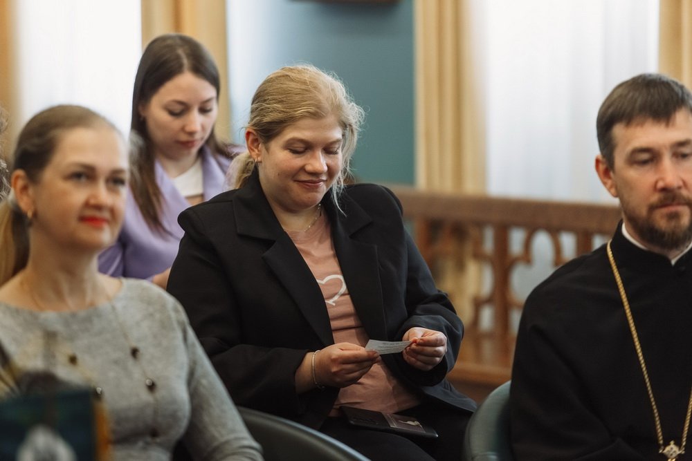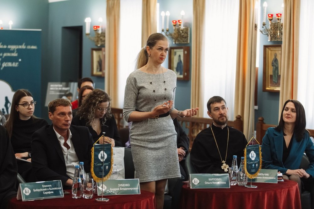 Продолжил первый день фестиваля круглый стол "Просветительство как механизм формирования духовно-нравственных основ для развития личности в современном мире". К участникам первой дискуссионной площадки присоединились начальник главного управления по образованию Могилевского областного исполнительного комитета Андрей Борисович Заблоцкий; заместитель начальника управления по образованию Бобруйского горисполкома Оксана Владимировна Борисевич; клирик прихода храма Архангела Михаила г. Минска иерей Дмитрий Маркин; психолог Благотворительного Фонда поддержки семьи, материнства и детства "Покров" Руслан Александрович Писаренко; учитель факультативных занятий СПУ "Центр поддержки семьи, материнства и детства "Покрова" Елена Петровна Вабищевич.