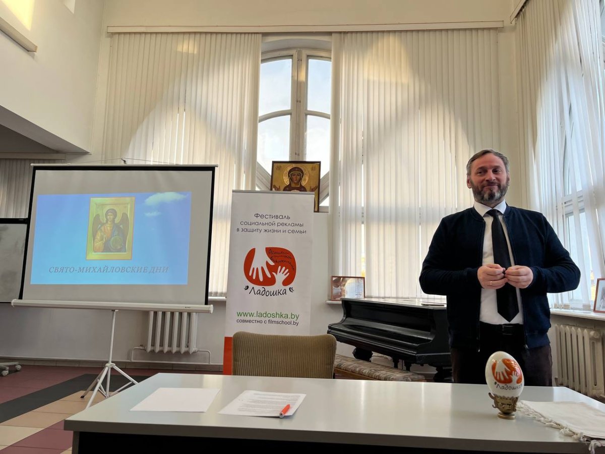 Затем состоялась встреча протоиерея Игоря Коростелева ,настоятеля прихода храма в честь иконы Божией Матери “Всех скорбящих Радость”, духовника Международного фестиваля социальной рекламы в защиту жизни и семьи “Ладошка”, со студентами и преподавателями минских учреждений образования.