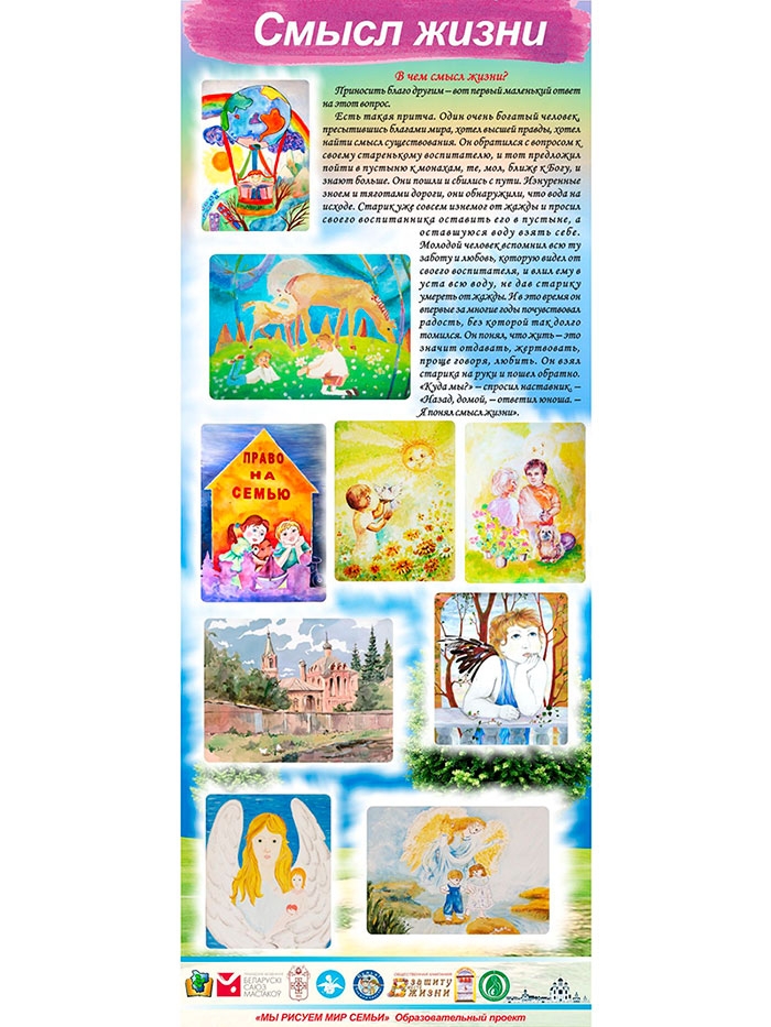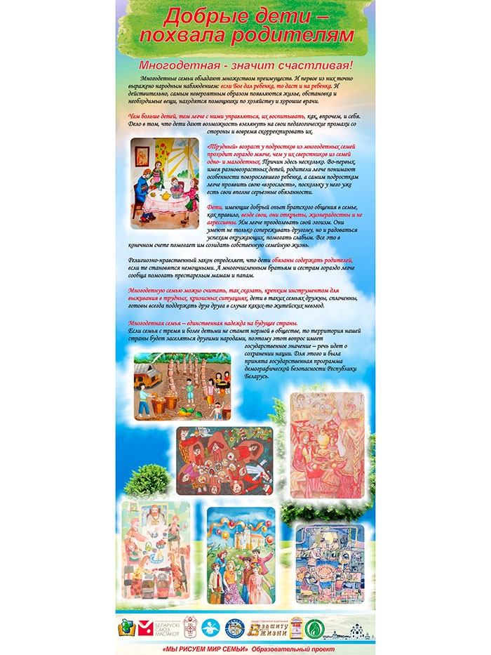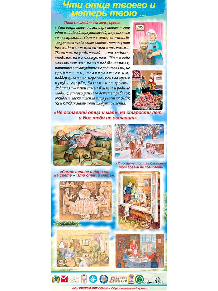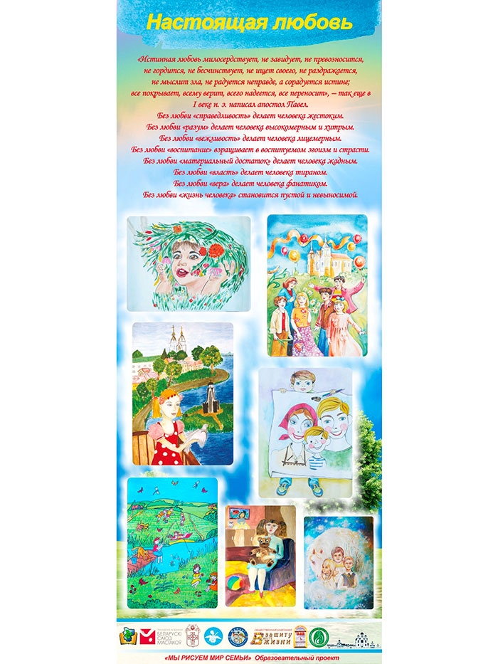 Интерактивная выставка «Мы рисуем мир семьи», выигравшая грант конкурса «Православная инициатива», получила одобрение Минского городского института развития образования и будет апробирована в ряде школ Минска как пособие для бесед о семье с учащимися начальных и средних классов.
