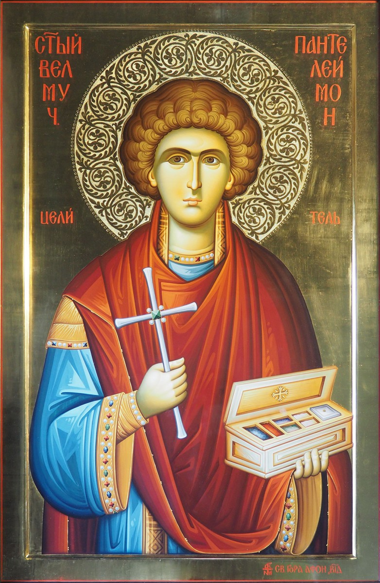 Икона великомученика и целителя Пантелеимона, которая была написана в Свято-Никольской келье «Буразери»: |