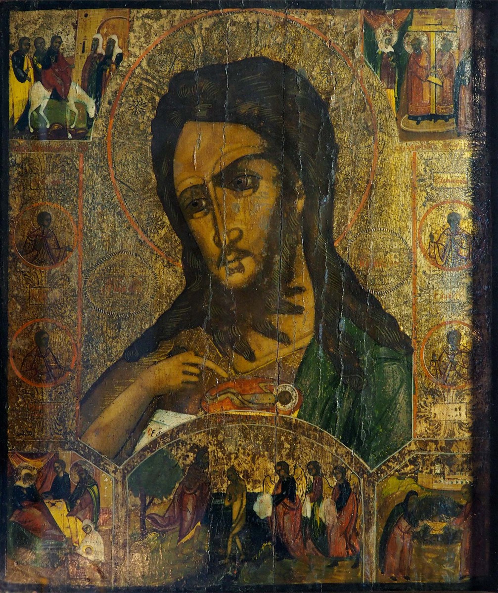 В Свято-Евфросиниевской церкви прихода более всего молящихся у икон святителя Николая Чудотворца и иконы Иоанна Крестителя, которая на глазах у прихожан просветилась. Эта икона прибыла в приход в виде чёрной доски: |