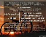 Состоится IV велопробег ко дню памяти святого благоверного князя Александра Невского14 сентября в 11.30 состоится IV велопробег от храма великомученика и целителя Пантелеимона микрорайона Руба города Витебска к храму преподобномученицы Евдокии п ... (Просмотров 1160) Подробнее... |
