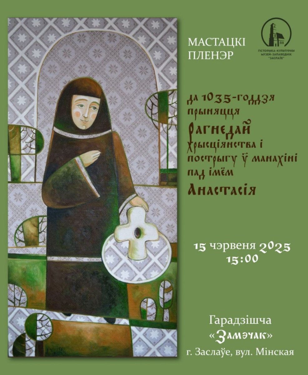 | | 10 ИЮНЯ 2025 (Вторник) 22:00:37 15 чэрвеня, у Дзень усіх святых, Спаса-Праабражэнскi сабор у Заслаўе запрашае далучыцца да мастацкай падзеі з нагоды 1035-годдзя прыняцця Рагнедай хрысціянства і пострыгу ў манахіні пад імем Анастасія.