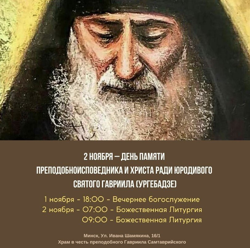 | 1 НОЯБРЯ 2025 (Суббота) 17:22:32 2 ноября, в день памяти преподобноисповедника и Христа ради юродивого святого Гавриила Ургебадзе, праздничное богослужение состоится в одноименном храме в Минске.Богослужение пройдет в храме преподобного Гавриила Ургебадзе прихода святителя Спиридона Тримифунтского. 7.00 - ранняя Божественная литургия 9.00 - Божественная литургия. Адрес: Минск, ул. Ивана Шамякина 16/1. Смотрите сюжет 2024 года о дне памяти преподобного Гавриила. Житие Мирское имя отца Гавриила - Годердзи Ургебадзе. Родился он 26 августа 1929 года в Тбилиси, в семье убежденного коммуниста. Отец рано скончался, и родные называли мальчика отцовским именем - Васико. Уверовал в Бога в детстве. Однажды соседки ругались, и одна из них сказала: "Ты меня распяла, как Христа". Мальчику стало интересно, что это значит - "распять" и кто такой Христос. Взрослые отправили ребенка в церковь, где сторож посоветовал ему прочитать Евангелие. Он накопил денег, купил Евангелие и через несколько лет знал текст практически наизусть. Желание монашества возникло в нем еще в юные годы. Позже старец говорил: "Большего героизма, чем монашество, нет". Мать его долгое время была против стремления сына к монашеству, но под конец жизни примирилась с его выбором, а затем и сама приняла постриг и была похоронена в монастыре Самтавро. Монашеский постриг он принял в 26 лет, получив имя преподобного Гавриила Афонского - старца, который прошел по воде и принес на афонский берег приплывшую по морю Иверскую икону Божией Матери. Отец Гавриил особо почитал чудотворный список Иверской, хранящийся в монастыре Самтавро. Во дворе своего дома на тбилисской улице Тетрицкаройской отец Гавриил построил многоглавую церковь. Он возводил ее своими руками и закончил около 1962 года. Иконы для этой церкви отец Гавриил находил на городских свалках, куда в те годы свозили и выкидывали вместе с мусором многочисленные святыни. Иногда он целыми днями бродил по свалкам. У него была небольшая мастерская, где он очищал иконы, делал им оклады из разных материалов. Стены его церкви сплошь были увешаны образами. Даже фотографии и изображения икон из светских журналов он помещал в рамочки. 1 мая 1965 года во время демонстрации иеромонах Гавриил сжег 12-метровый портрет Ленина, вывешенный на здании Верховного Совета Грузинской ССР, и стал проповедовать собравшимся людям Христа. Его за это сильно избили и посадили в изолятор КГБ Грузии. На допросе отец Гавриил говорил: он это сделал потому, что "нельзя боготворить человека. Там, на месте портрета Ленина, должно висеть Распятие Христа. Слава не нужна человеку. Надо писать: «Слава Господу Иисусу Христу»". В августе того года был помещён в психиатрическую больницу на обследование. Там был признан сумасшедшим. Старцу поставили диагноз: "психопатическая личность, верит в Бога и ангелов". Ему выдали "белый билет". Впоследствии церковные иерархи, в угоду светским властям, не разрешали ему заходить в церковь, не пускали на службы, прогоняли. У батюшки не было возможности причаститься, а он желал этого всей душой. Он мог по несколько дней обходиться без еды, подолгу не спать, но очень тяжело переносил отчуждение от церкви. Старец часто от бессилия плакал, открывая душу своим сестрам. В 1980-е годы поселился в монастыре Самтавро. В последнее время он жил в круглой башне. Монахини некоторое 