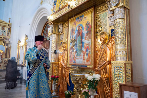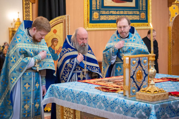 По отпусте Литургии состоялось славление празднику – прозвучали тропарь, кондак и величание Благовещению Пресвятой Богородицы "Архангельский глас вопием Ти, Чистая: Радуйся, Благодатная, Господь с Тобою".