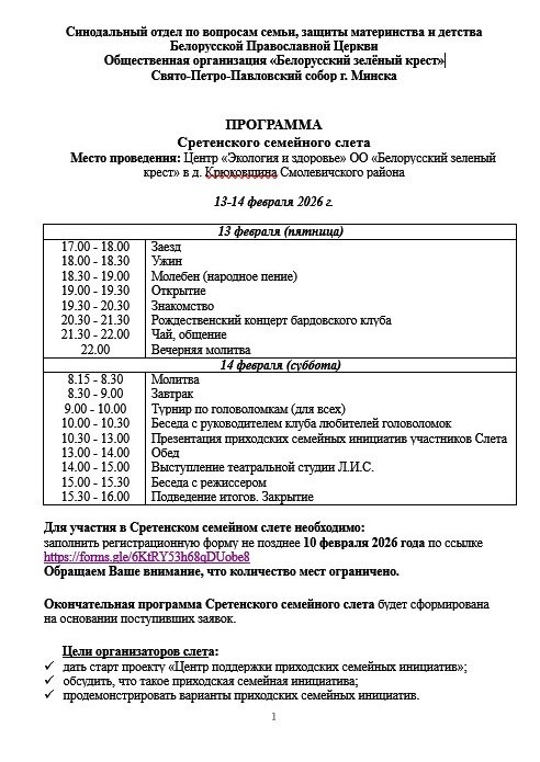 С 13 по 14 февраля в деревне Крюковщина Смолевичского района планируется проведение II Сретенского семейного слета.