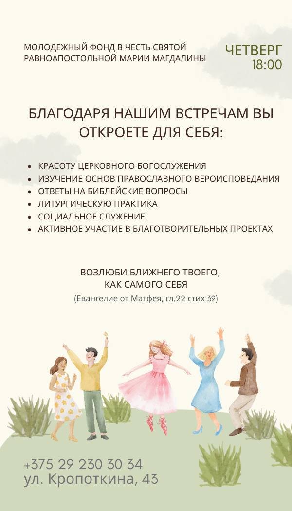| | 3 НОЯБРЯ 2025 (Понедельник) 14:02:08 При приходе святой равноапостольной Марии Магдалины в Минске начал работу Молодежный благотворительный фонд.