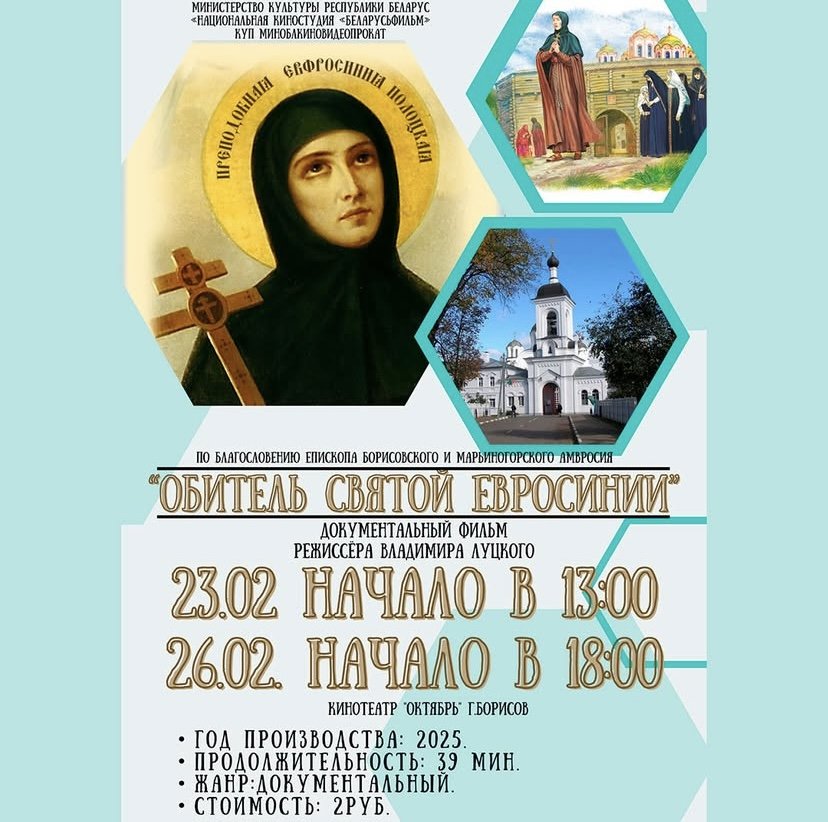 | 13 ФЕВРАЛЯ 2025 (Четверг) 19:25:12 С 20 февраля в Беларуси выходит в прокат фильм “Обитель святой Евфросинии” режиссера Владимира Луцкого, созданный киностудией “Беларусьфильм" для показа в год 900-летия Спасо-Евфросиниевского ставропигиального женского монастыря города Полоцка.В основе документальной картины известного режиссера-документалиста Владимира Луцкого — житие преподобной Евфросинии Полоцкой, а главным рассказчиком выступает настоятельница древнейшего в Беларуси Спасо-Евфросиниевского женского монастыря игуменья Евдокия (Левшук). В фильме ведется рассказ о преподобной на фоне событий, которые разворачиваются в современном Спасо-Евфросиниевском женском монастыре. Сценарий картины "Обитель Святой Евфросинии" Владимир Луцкий разработал вместе с писательницей Людмилой Рублевской. О чем фильм Евфросиния Полоцкая считается покровительницей и небесной заступницей земли белорусской. Евфросиния Полоцкая родилась в 1104 г. в семье князя Святослава-Георгия, младшего сына Всеслава Чародея. Неожиданно для близких в 12-летнем возрасте княжна Предслава втайне приняла постриг под именем Евфросиния. Затем по благословению Полоцкого епископа Илии она поселилась в келии Полоцкого Софийского собора, где кроме молитвы и духовного чтения занималась переписыванием священных книг. Ёе стараниями пополнялась библиотека Софийского собора и велось полоцкое летописание. Позднее по заказу Евфросинии мастером Лазарем Богшей был создан уникальный шедевр древнебелорусского прикладного искусства - крест, названный ее именем. Преподобная Евфросиния основала мужской и женский монастыри, ставшие центром просвещения в Полоцком княжестве. Основанный ее Спасо-Евфросиниевский монастырь и сегодня остается сердцем духовным белорусской земли, сердцем Полоцка - колыбели белорусской государственности, символом мира и единения. Сюда приезжают паломники со всего света, сюда приходят за спасением и мудрым советом, как приходили когда-то к первой игуменье. / sobor.by/ (просмотров 749) |