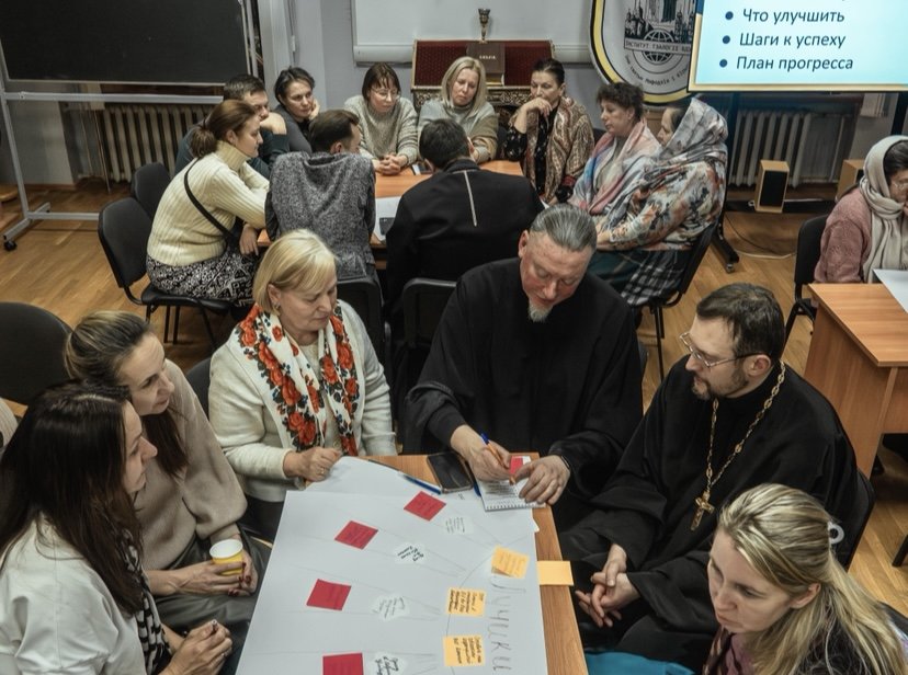 Основным направлением встречи стало налаживание контактов в воскресных школах внутри благочиний и Минской епархии. Педагоги не только презентовали свой опыт работы, но и, предварительно разделившись на команды благочиний, совместно анализировали сильные и слабые стороны, уникальный опыт работы и направления развития, которые затем презентовали перед всеми собравшимися. Итоговые проекты, подготовленные в рамках семинара-совещания, в дальнейшем будут размещены на ресурсах Синодального отдела.