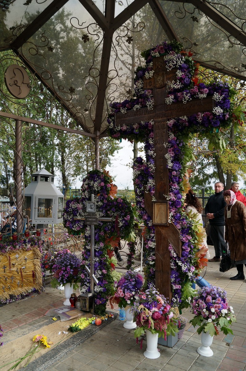 К празднику Воздвижения Честного и Животворящего Креста Господня верующие украсили место упокоения блаженной Валентины Минской осенними цветами