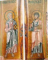 Святой Лука написал также на досках и изображения святых первоверховных апостолов Петра и Павла и сим положил начало доброму и досточестному делу – писанию святых икон во славу Божию, Богоматери и всех Святых, на украшение святых церквей и на спасение верующих, благочестно почитающих сии святые иконы. Аминь.