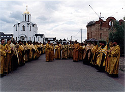 строительства. Возле церкви на всякий случай дежурит "скорая". Нищие