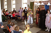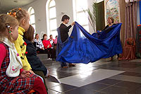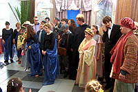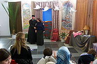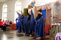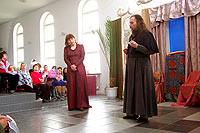 В воскресение, 30-го апреля, по окончании Божественной литургии, в зимнем саду трапезной прихода иконы Божией Матери «Всех скорбящих Радость» театральная студия Детского Экологического Центра «Живая нить» из Москвы показала спектакль по роману Алессандро Барико «Море-океан». Все роли в спектакле исполняли подростки и молодые люди с ограниченными возможностями, и их родители. Спектакль, также как и роман является остросюжетным, минималистским по форме, и, вместе с тем, глобальным по уровню тех проблем, которые он ставит. Первозданность чувств, владеющих героями, таких как любовь, раскаяние, страх смерти, желание отомстить, необходимость прощать – делает содержание спектакля потенциально интересным и доступным для всех. Костюмы, аксессуары и декорации изготавливались коллективом Центра «Живая нить». В ходе работы над спектаклем создан ряд живописных и поделочных работ, а также стихотворный цикл, посвящённый героям «Море-океана». Детский Экологический Центр «Живая нить» был создан в 1991г. на территории Московского Ипподрома. Первоначально он возник как оздоровительный центр на основе иппотерапии и инвалидного конного спорта. В настоящее время ДЭЦ осуществляет комплексную программу социальной реабилитации и интеграции детей с ограниченными возможностями. Метод педагогической деятельности центра – это включение ребёнка через творчество в культурное пространство общества. Приобщаясь к искусству, ребёнок развивается как личность, раскрываются его скрытые возможности и ресурсы. Занятие искусством – та нива, которая дарует им нормальное человеческое общение, возможность самовыражения и новый жизненный опыт.