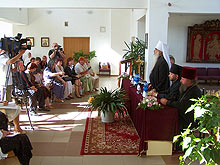 В домовой церкви учебного корпуса прихода иконы Божией Матери «Всех скорбящих Радость» прошла пресс-конференция по случаю принесения Десницы Предтечи и Крестителя Господня Иоанна в г. Минск с представителями СМИ Беларуси и России. В пресс-конференции приняли участие: митрополит Минский и Слуцкий Филарет, вице-президент Фонда Андрея Первозванного М.И. Якушев, архимандрит Алексий (Шинкевич), настоятель Скорбященского прихода прот. Игорь Коростелёв, иеромонахи Кирилл и Пётр, Цетинский монастырь (Черногория).