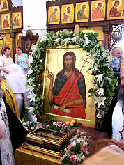 "Пророк Иоанн Креститель - один из самых почитаемых в Православии святых. Предтеча (или посланник) Христа, предсказавший Его приход, образует связующее звено между Ветхим и Новым Заветами; он последний в ряду ветхозаветных пророков и первый святой Нового Завета, в котором
