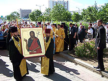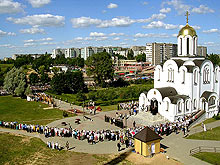 Под колокольный звон, при стечении тысяч верующих в минском приходе иконы Божией Матери «Всех скорбящих Радость» состоялась торжественная встреча величайшей православной святыни - ковчега с Десницей Предтечи и Крестителя Господня Иоанна. Ковчег с Десницей прибыл в национальный аэропорт Минск-2 спецрейсом с Северного Кавказа (г. Ростов-на-Дону), где он был встречен духовенством г. Минска во главе с митрополитом Минским и Слуцким Филаретом и прихожанами Свято-Никольской церкви пос. Сокол. В Скорбященском приходе Святыню встречали священнослужители из разных епархий Белорусской Православной Церкви, священники из Брянской епархии России, сестры милосердия из сестричеств Минска, Бреста и Гомеля, монахи и монахини белорусских монастырей. Три Поместных Православных Церкви – Русская, Сербская и Русская Зарубежная соединили свои труды и молитвы для осуществления этого святого дела. Акция по принесению Десницы Предтечи и Крестителя Господня Иоанна в Россию, Украину и Беларусь проводится по благословению предстоятеля Сербской Православной Церкви патриарха Павла и предстоятеля Русской Православной Церкви патриарха Алексия II. Организатором акции выступил Фонд Андрея Первозванного. Ковчег с Десницей сопровождают сотрудники Фонда и монахи Цетинского монастыря из Черногории, где до сего времени пребывала Десница Иоанна Предтечи. Ковчег с мощами был установлен в Свято-Евфросиниевской церкви Скорбященского прихода. Митрополит Минский и Слуцкий Филарет совершил перед мощами молебен с акафистом. Затем началось всенародное поклонение святыне. Поклониться мощам можно в любое время суток до 11:00 6 июля.