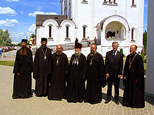 Духовенство из группы сопровождающей мощи Предтечи и Крестителя Господня Иоанна иеромонахи Кирилл и Пётр из Цетинского монастыря (Черногория), игумен Аркадий и иеродиакон Фотий из Свято-Троице-Сергиевой Лавры (Россия), послушница Ксения, представляющая Русскую Православную Церковь Заграницей, посетили полоцкий Свято-Евфросиниевский женский монастырь. В Епархиальном управлении гостей принял епископ Полоцкий и Глубокский Феодосий. Для поклонения паломникам был изнесён воссозданный воздвизальный крест прп. Евфросинии Полоцкой. На Божественной литургии в Крестовоздвиженском соборе монастыря паломники в священном сане сослужили Его Преосвященству епископу Феодосию. По окончании литургии, в Спасо-Преображенской церкви гости приложились к мощам прп. Евфросинии.