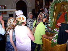 Продолжается поклонение мощям пророка и Крестителя Господня Иоанна...