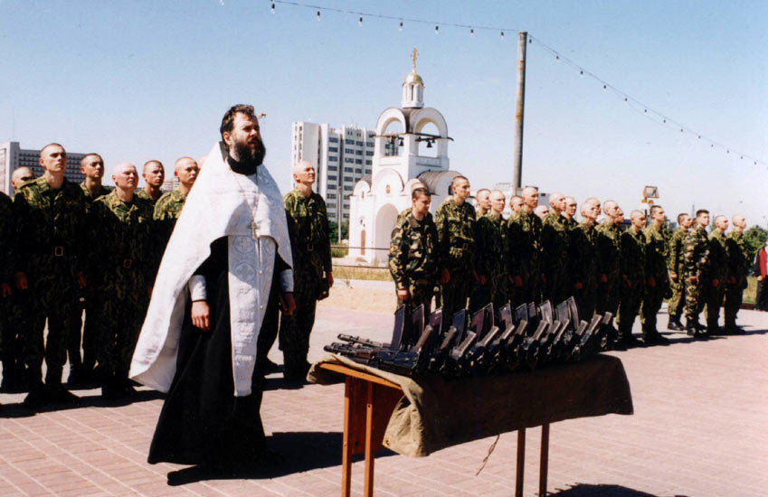 Учитывая опыт истории и современности, мы, военнослужащие, обратились за помощью к Православной Церкви Беларуси, к которой традиционно принадлежит большая часть наших соотечественников. Это благотворное сотрудничество продолжается более двух лет, в результате чего в частях появились церковные "уголки", где совершаются Таинства и Богослужения; священники благословляют принятие воинской присяги, беседуют с солдатами и офицерами, наставляя, поддерживая их в несении нелегкого труда.
