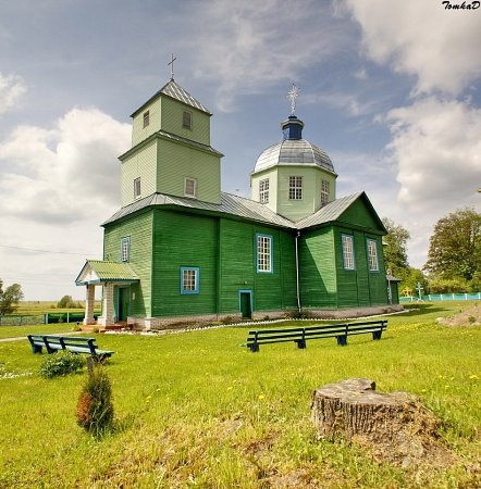 В давние времена в этих местах заблудился богатый купец. Долго плутал он и обратился к Богу пообещав: если выйдет на дорогу, построит храм. И в том самом месте, где он нашёл своё спасение и был возведён Свято-Преображенский храм - один из уникальных памятников белорусского деревянного зодчества начала 17 века. Его постройку датируют 1627 годом. Церковь обновлялась и перестраивалась в 1794 и 1880-м годах.