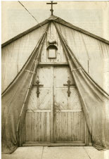 Vor einem Jahr müsste der Gottesdienst noch im Freien abgehalten werden. Jetzt verfügt die Gemeinde schon über eine Zeltkirche die aus einem Armeezelt entstand. |