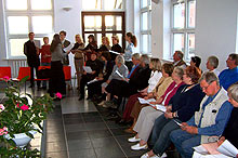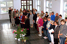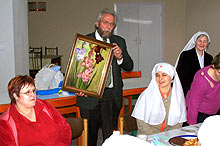In den Werkstätten für die physisch und körperlich behinderten Menschen der Gemeinde "Aller leitenden Freude" wurde Ausstellung der Kunstwerke von jungen Leuten mit Behinderungen eröffnet. Die Ausstellung darstellt die mehrfachige Fähigkeite der Beschäftigte, die außerhalb ihrer beruflicher Tätigkeit in den Werkstätten liegen. Mit den Zeichnungen, kleinen Bildhauern von Tieren, handgefertigten Erzeugnissen aus Stroh und Stickperlen haben sich die Eltern, Familienangehörige, Freunde, Gemeindemitglieder und die Gäste aus Deutschland bekanntgemacht. Ausführliche Informationen über die Ausstellung konnte man aus einem Booklet bekommen, das die Beschäftigte selbst gefertigt und gedrükt haben, die zweiten Lehrgang machen. Die Gäste der Ausstellung haben aus den Händen der Authoren kleine Gedenkgeschenke bekommen.