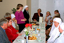 Сестричество милосердия прп. Евфросинии Полоцкой и диаконическая служба прихода иконы Божией Матери «Всех скорбящих Радость» провели встречу с партнёрами из организации «Partnerschaftsausschuss MINSK» церковного округа Dortmund-West (Германия). Уже более 12-ти лет немецкие партнеры оказывают информационную и гуманитарную поддержку сестрам и диаконической службе прихода. С 1991 года сестры милосердия несколько раз проходили стажировку в Диаконических станциях Дортмунда. В Минске проводились обучающие семинары по уходу за тяжелобольными. Гости познакомились с повседневной работой сестёр милосердия, посетив несколько семей тяжёлых больных и инвалидов. Состоялась встреча с опекаемой сестричеством группой церебральных больных и их родителями, а так же с родителями и сотрудниками мастерских для людей с умственными ограничениями.