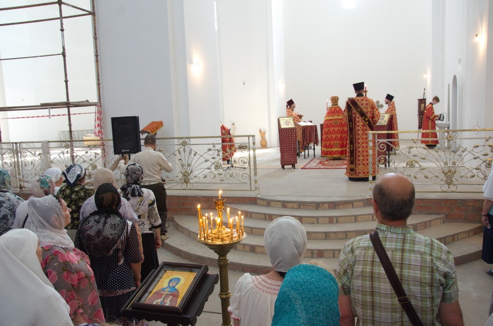 Праздничная Литургия состоялась в соборе иконы "Всех скорбящих Радость", которую возглавил настоятель прихода протоиерей Игорь Коростелёв. После богослужения прошёл крестный ход, в котором участвовали несколько сотен верующих.