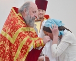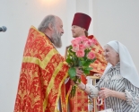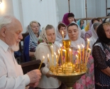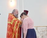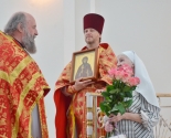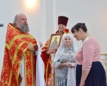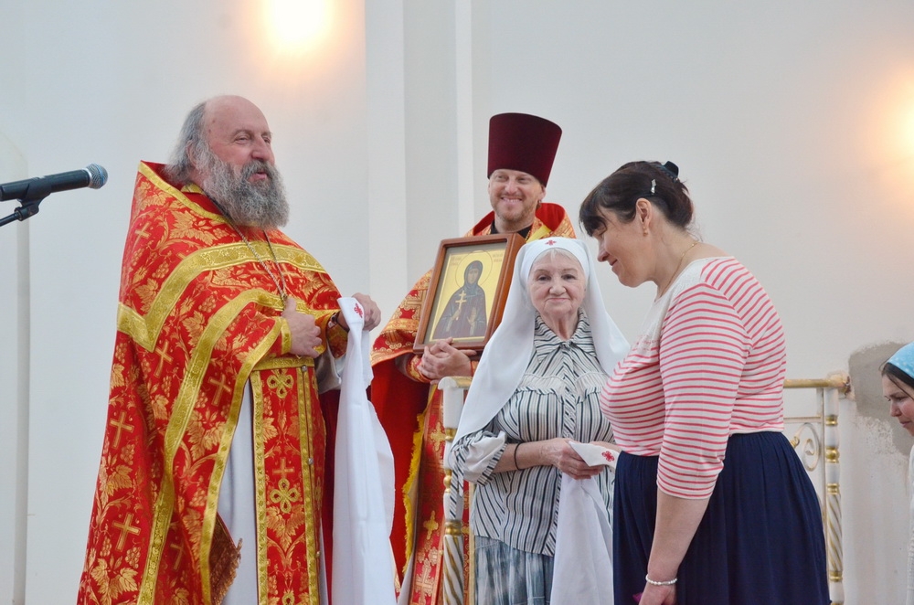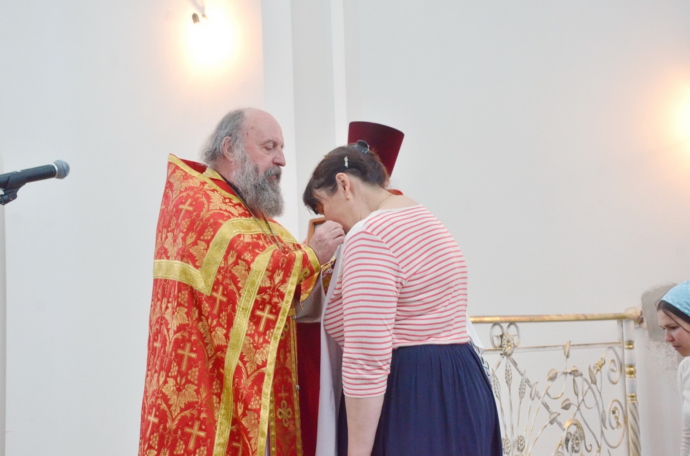 Также в этот торжественный для прихода день состоялось принятие двух новых сестёр в ряды приходского сестричества во имя святой преподобной Евфросинии Полоцкой. Отец Игорь благословил каждую из сестёр и вручил им белые косынки. Он также поблагодарил всех сестёр за их самоотверженный труд, пожелал здоровья и крепости духовной в несении нелёгкого и очень ответственного послушания.