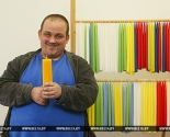 Ещё одно направление - изготовление свечей. В нём задействовано три рабочих кабинета вместо стандартного одного. Ведь свечей надо заготовить очень много. Разного размера, формы, цвета - глаза разбегаются. Невозможно пройти мимо и не выбрать понравившуюся свечу. Работающие со свечами - самые спокойные и сосредоточенные. Они лишь мило улыбаются, продолжая выполнять задание. А Денис - самый разговорчивый из них - решает рассказать о праздничной работе мастерских. "Мы делаем не только свечи, но и букетики вербы декорируем в горшочки, создаём украшения для праздничного стола. Но самое главное - мы работаем. А ведь много людей просто ленятся, такого я не понимаю. Ведь что будет, если никто не будет работать... Как только появились эти мастерские, я пришёл сюда. Ведь это очень важно для нас", - делится мыслями Денис. В качестве хобби у него коллекционирование фотографий коней.