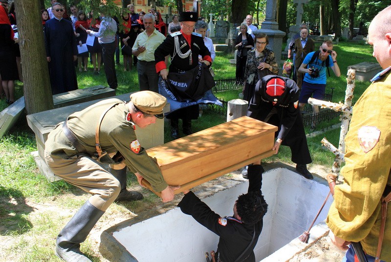 После богослужения останки казаков были вынесены из храма, установлены на артиллерийский лафет и торжественно провезены по городу Люблину в сопровождении польских уланов и казаков. По всему маршруту следования до кладбища процессию приветствовали жители Люблина. На кладбище архиепископ Авель освятил место погребения и останки казаков.