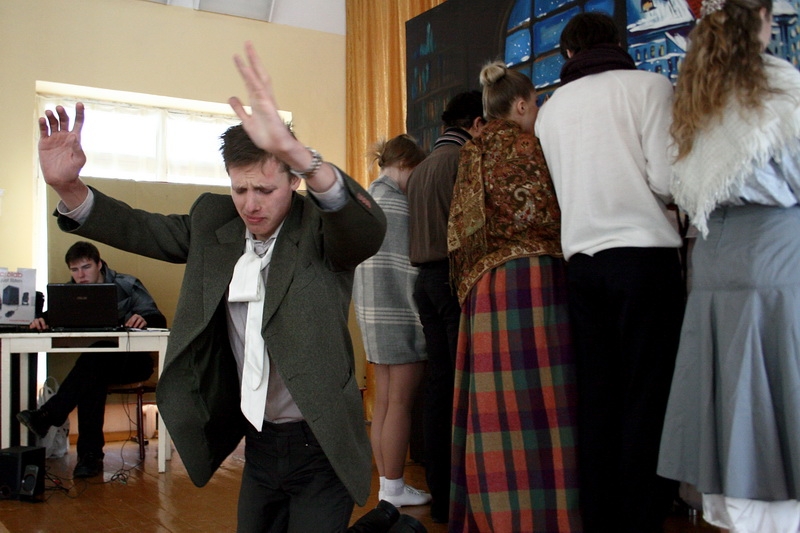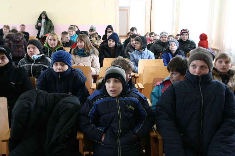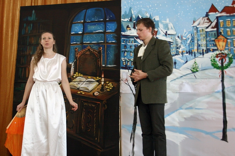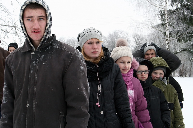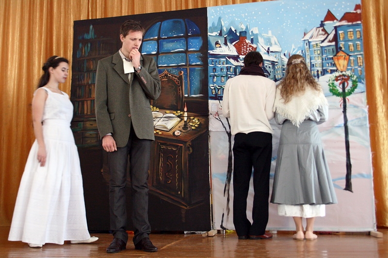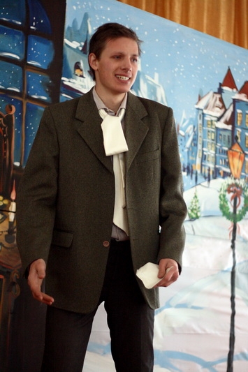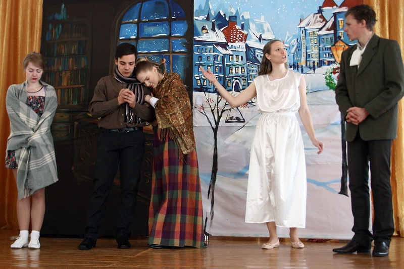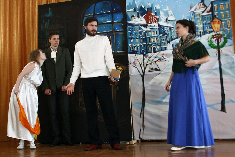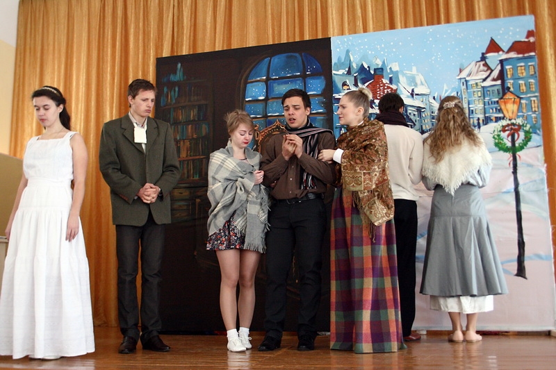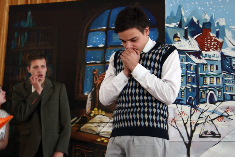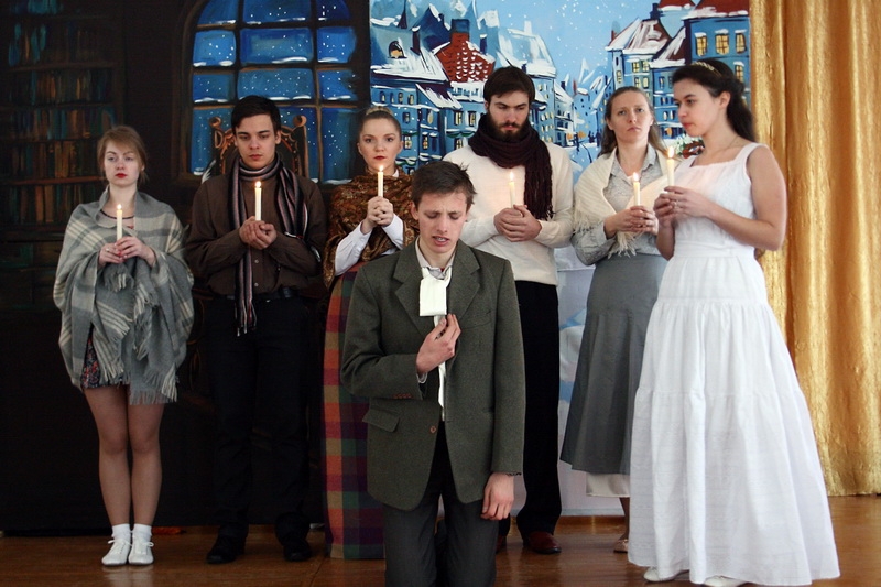 У апошні дзень святак, у сонечную і марозную нядзелю, 17 студзеня, моладзевае брацтва імя свяшчэннамучаніка Уладзіміра Хіраска накіравалася з падарункамі і сваім новым спектаклем па твору Чарльза Дзікенса ў Чэхаўшчыну – да дзяцей з мясцовай дапаможнай школы-інтэрната.
