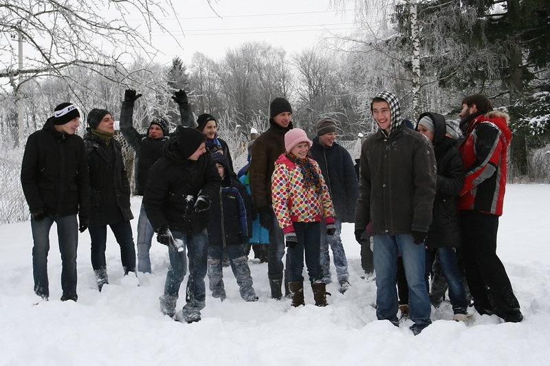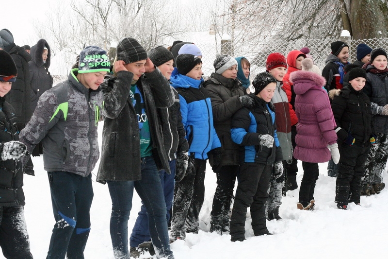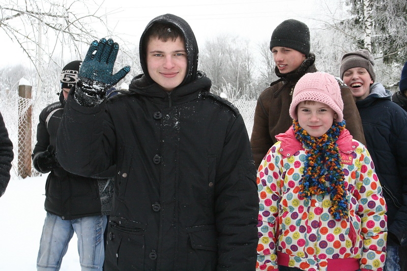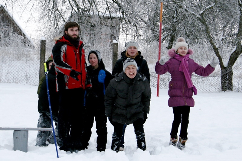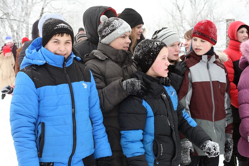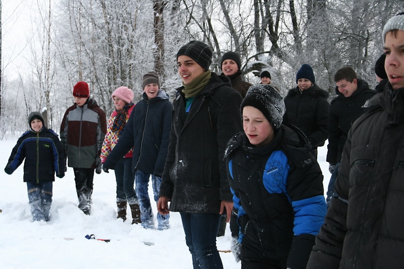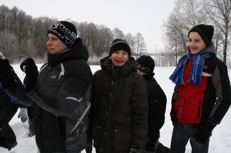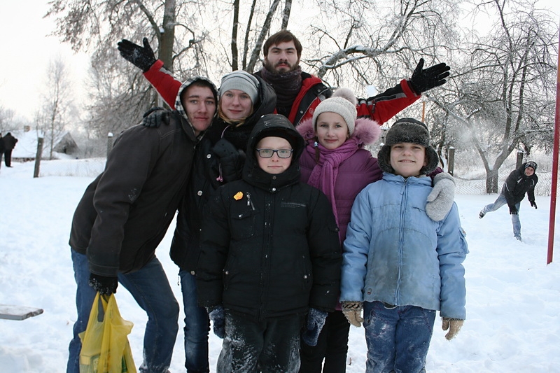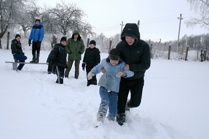 Падсілкаваўшыся абедам, валанцёры разам з дзецьмі рушылі на двор. Бліскучы снег, вялізныя сумёты, яскравая сонейка і бясконцае сіняе неба – здаецца, сама прырода вітала дружную кампанію і разам з ёй радавалася жыццю. На свежым паветры малыя прынялі ўдзел у спартыўных спаборніцтвах – бегалі навыперадкі на адной лыжы, перацягвалі адзін аднаго на веніку – весяліліся ад душы. Нават калі падрыхтаваныя гульні скончыліся і вызначылася каманда пераможцаў дзетвара яшчэ доўга кідалася снежкамі і валялася ў пушыстым снезе.