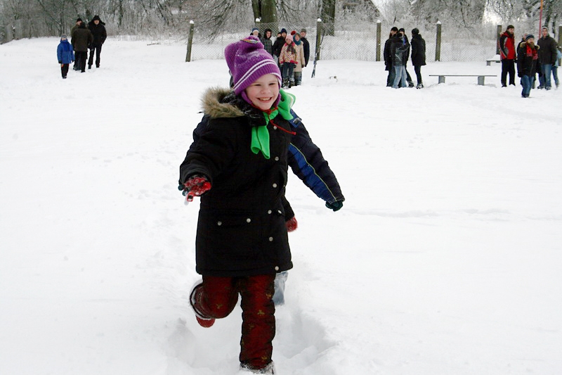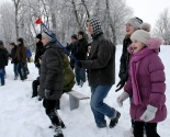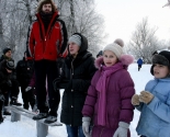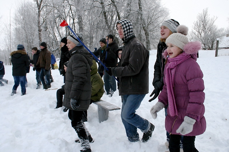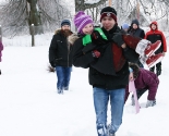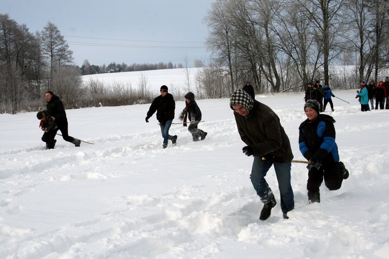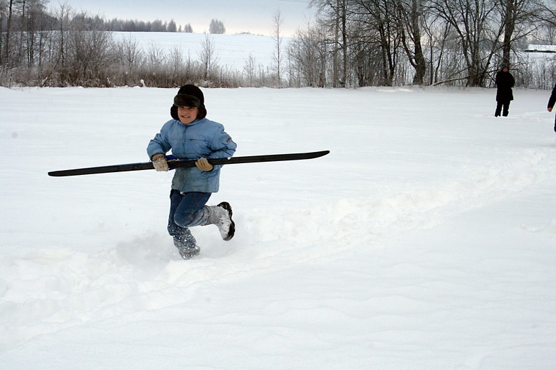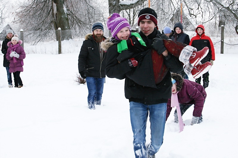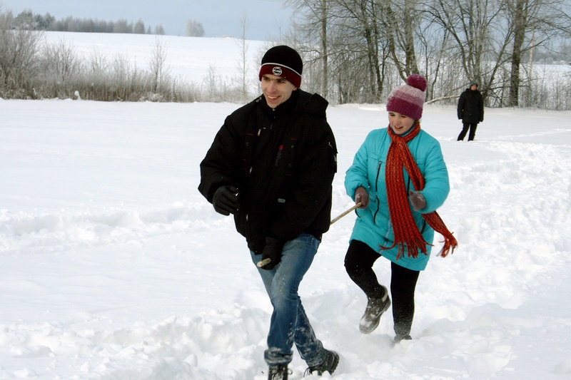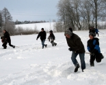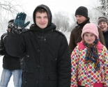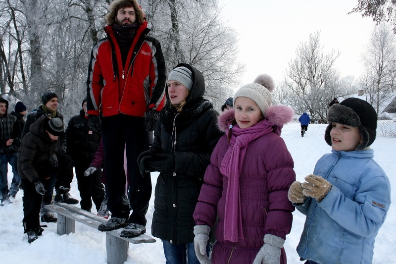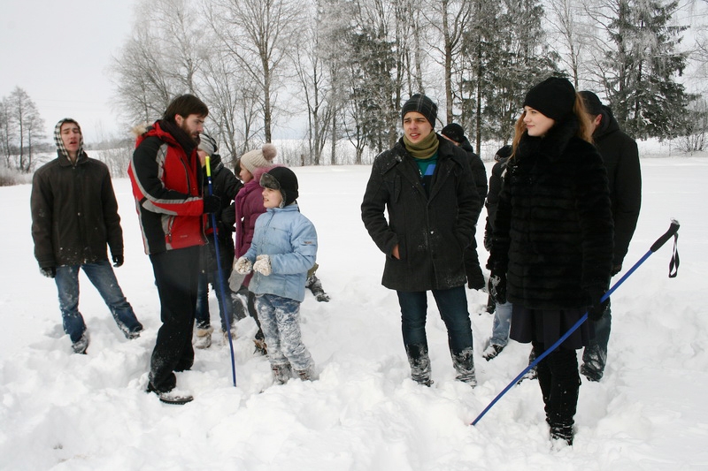 Падсілкаваўшыся абедам, валанцёры разам з дзецьмі рушылі на двор. Бліскучы снег, вялізныя сумёты, яскравая сонейка і бясконцае сіняе неба – здаецца, сама прырода вітала дружную кампанію і разам з ёй радавалася жыццю. На свежым паветры малыя прынялі ўдзел у спартыўных спаборніцтвах – бегалі навыперадкі на адной лыжы, перацягвалі адзін аднаго на веніку – весяліліся ад душы. Нават калі падрыхтаваныя гульні скончыліся і вызначылася каманда пераможцаў дзетвара яшчэ доўга кідалася снежкамі і валялася ў пушыстым снезе.