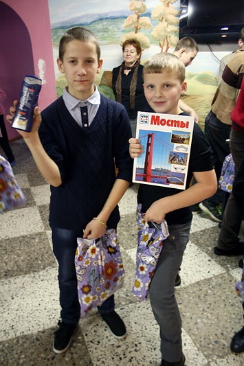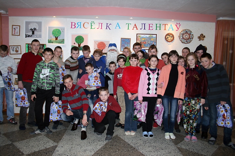 Зацягнуць у інтэрнат малых удалося толькі запрашэннем на святочны стол з салодкімі прысмакамі, якія прывезлі братчыкі. Аднавіўшы сілы, усе з запалам пакінулі іх на “танцполе” – пад завадную музыку народаў свету дзеці разам з мінчукамі весела танцавалі армянскія, грэчаскія і славянскія танцы, шчасліва смяяліся ды абдымаліся. Пад занавес выйшаў Дзед Мароз з падарункамі. Кожны атрымаў ад яго асабісты гасцінец, сярод якіх былі кніжкі на розныя тэмы ( "Сонца", "Рыбы", "Чалавечае цела", "Жывёлы" і гд), сшыткі ды альбомы для малявання, алоўкі і нататнікі, шампуні, шкарпэткі і гд.