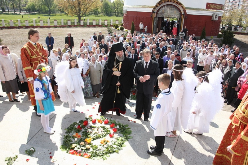 Затем Анатолий Лис поздравил всех присутствующих со светлым праздником Пасхи и выразил признательность Белорусской Православной Церкви, духовенству Брестской епархии за духовно-нравственное воспитание нашего народа, особенно подрастающего поколения.