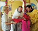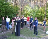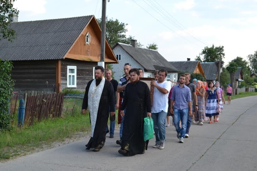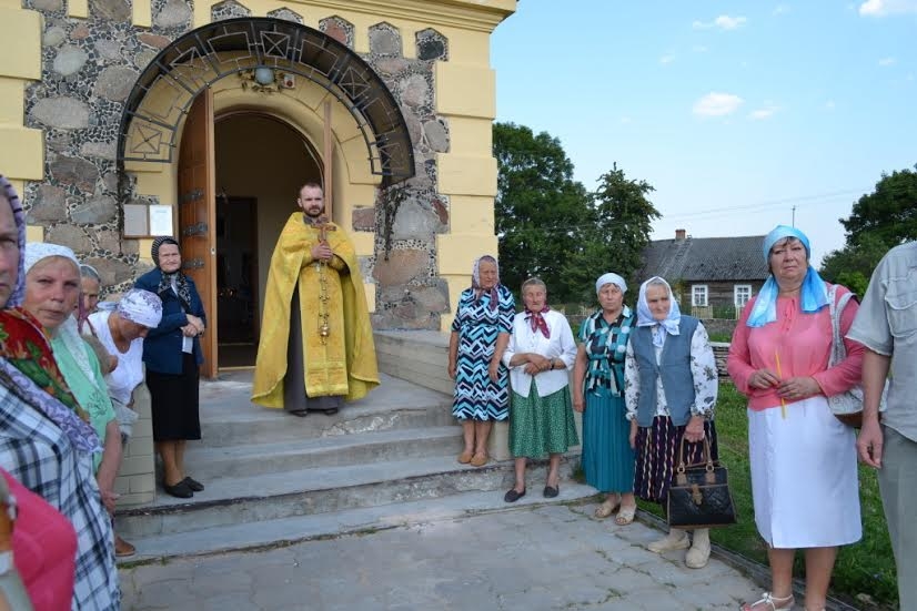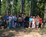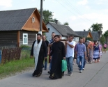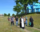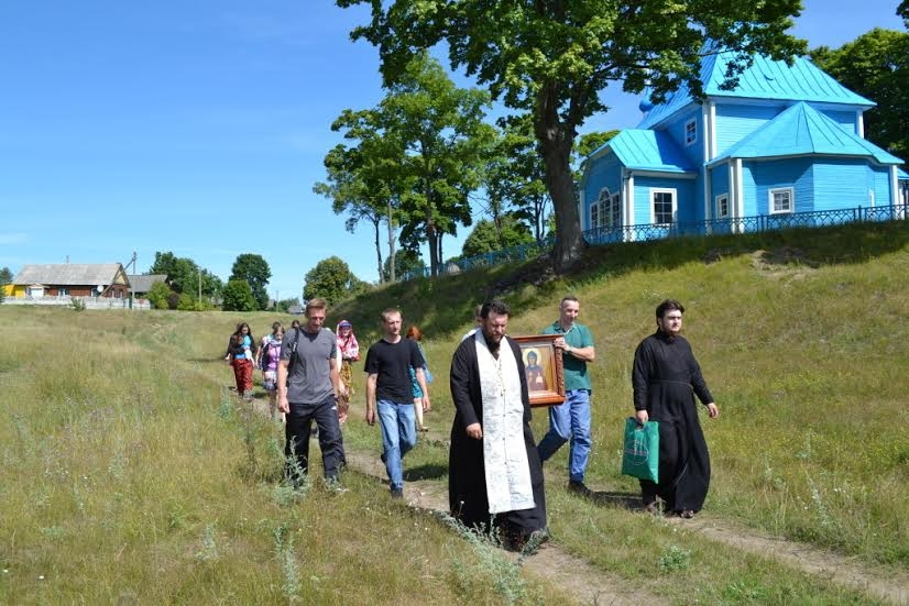 В четверг все отправились крестным ходом в храм Рождества Пресвятой Богородицыв с. Докудово 2, где вместе с настоятелем храма о. Иоанном Пешко и прихожанами совершили молебен преподобной Евфросинии Полоцкой, равноапостольному князю Владимиру и другим святым.