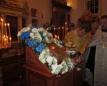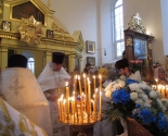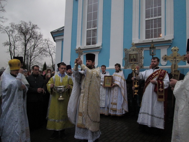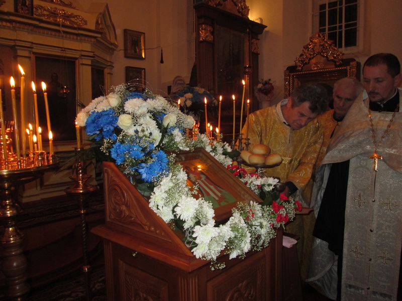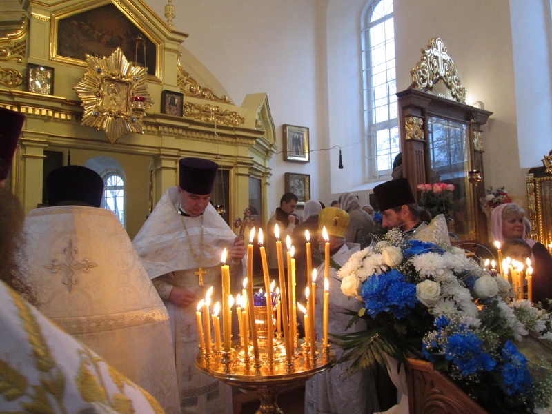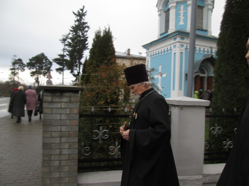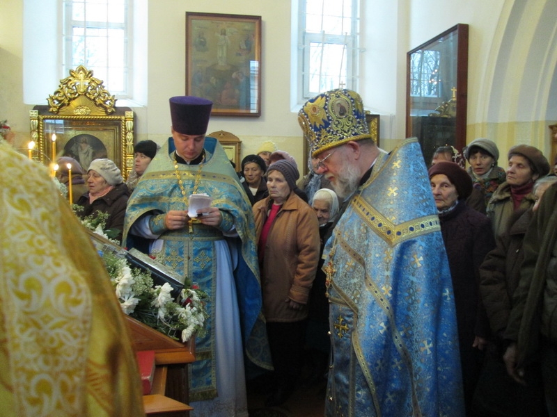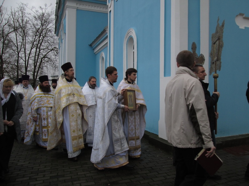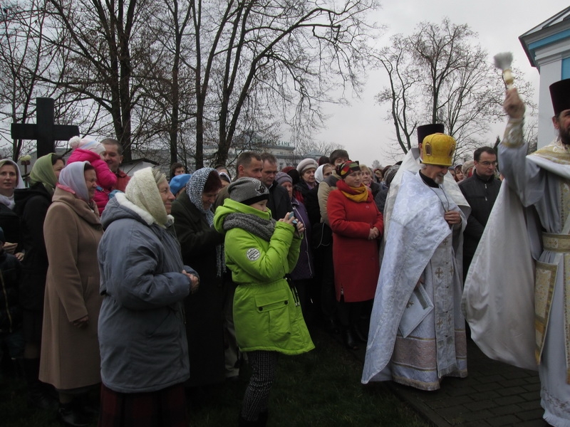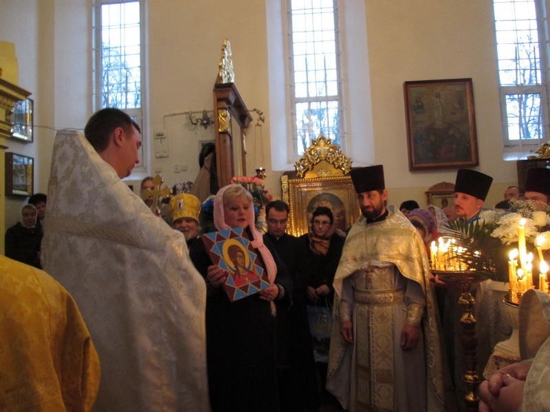 Возглавил Божественную литургию митрофорный протоиерей Михаил Велисейчик, бывший ранее настоятелем этого храма, благочинным этого округа до 2013г. (сейчас он служит в Гродно). Во время проповеди отец Михаил поведал об иконе Богородицы, призывал задуматься о смысле жизни, о трёх добродетелях, пояснил, что ходатаем перед Господом является Богородица, посоветовал прочитать “Письмо к Богу” Андрея Ткачёва. После Божественной литургии был совершён молебен.
