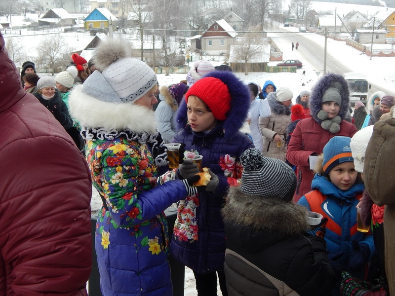 Отец Алексей обратился ко всем со словами поздравления, рассказал о сущности праздника Рождества Христова и пожелал всем в эти святые рождественские дни не забыть тех, кто одинок, болен и нуждается в нашем тепле, заботе и попечении. А затем детей и взрослых ожидала встреча со сказочными героями: Дедом Морозом и Снегурочкой, Лявоном и Лявонихой. На празднике в исполнении церковного хора звучали рождественские песнопения, школьники читали стихи, вместе со взрослыми участвовали в различных викторинах, водили хороводы с Дедом Морозом и Снегурочкой. Лявон и Лявониха угощали всех гостей праздника горячим травяным чаем, ароматными блинами, булочками, домашней выпечкой, а детей особо порадовали конфеты на палочке "петушки" домашнего изготовления. Хочется верить, что такие рождественские праздники на приходе будут традиционными.