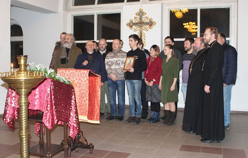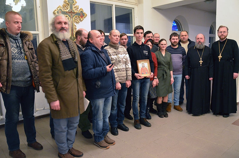 Як вядома, 24 снежня Царква святкуе памяць свяшчэннамучаніка Уладзіміра Хіраска. Таму маладыя людзі на чале з духаўніком брацтва протаіерэем Аляксандрам Проніным узгадалі асноўныя моманты жыцця і духоўнага подзвігу айца Уладзіміра. Таксама айцец Аляксандр зачытаў пісьмовыя сведкі людзей, якія ўжывую бачылі айца Уладзіміра Хіраска.