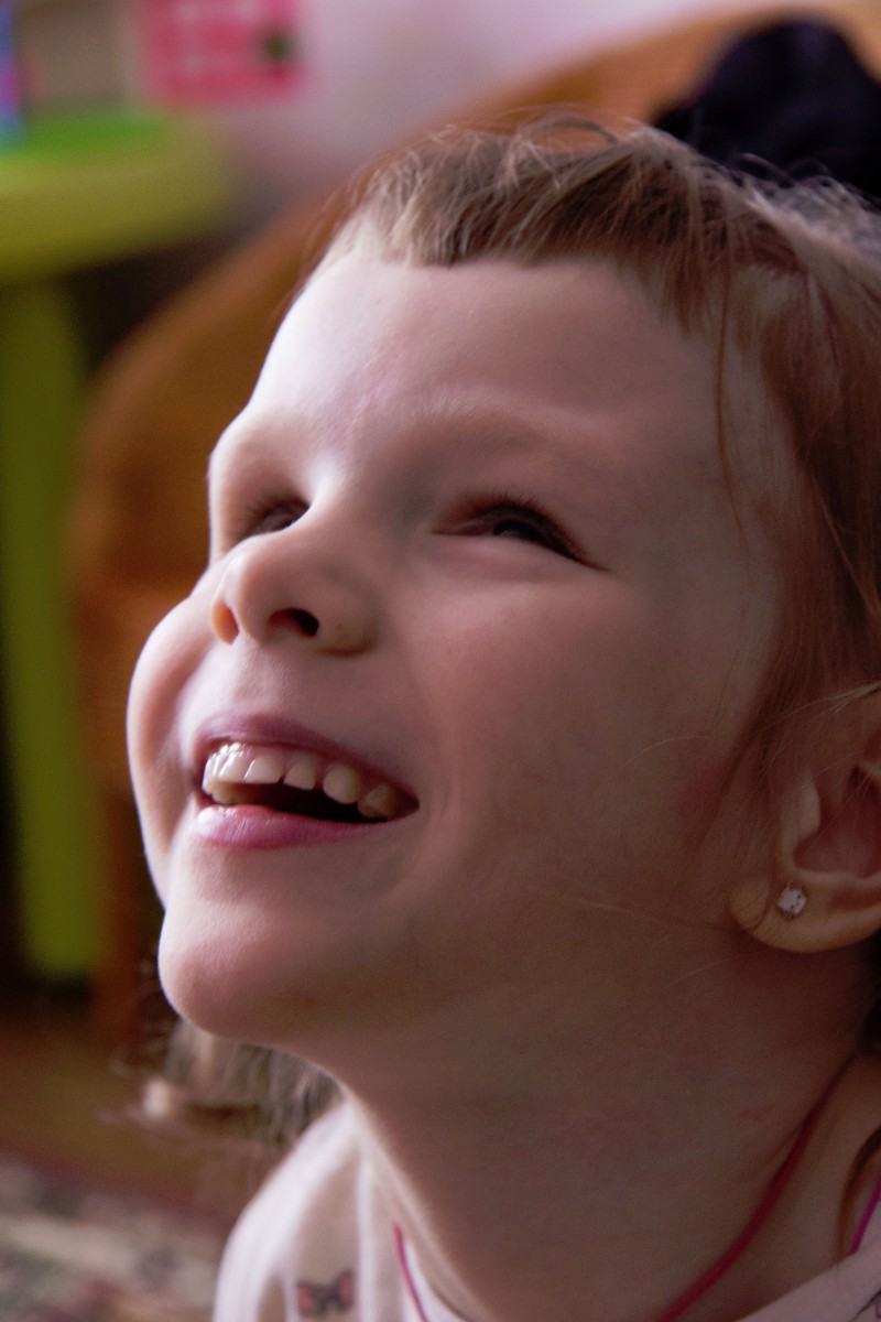 Когда мы нажали на кнопку звонка, навстречу нам вышла мама Света, за ней выбежал пятилетний сынишка Богдан, а потом пришёл папа Андрей и привёл Настю. Девочка заулыбалась так тепло, как будто видела нас уже не раз. Но Настя не видела…
