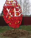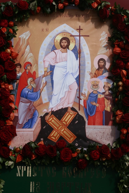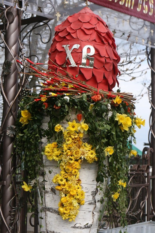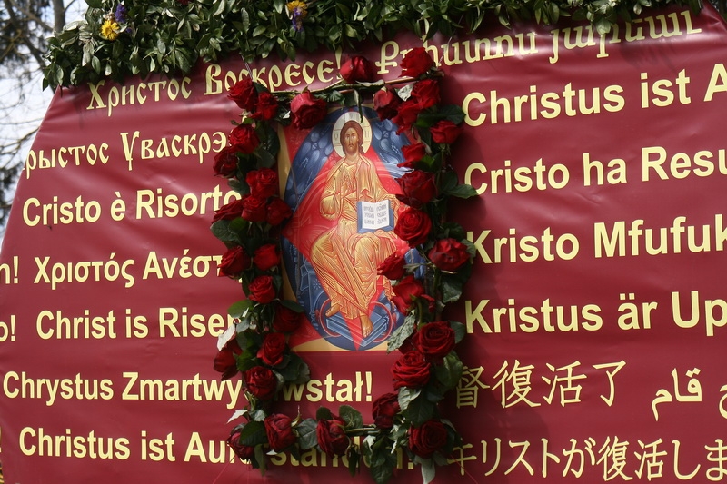 Тут же - инсталляция с иконой Господа и надписями "Христос Воскресе!" на разных языках мира. Как тут не вспомнить: “И сказал им: идите по всему миру и проповедуйте Евангелие...”.