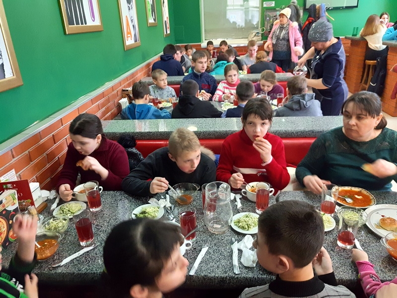 В феврале было вывезено 35 детей из посёлка Саханка в возрасте от года до 14 лет. Для детей было организовано посещение аквапарка, горячее питание. Для 45 детей- беженцев, которые остались без крова, их дома разбиты, многие остались сиротами, было организовано посещение цирка.