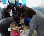 В посёлке Саханка вновь подверглась обстрелу школа, была разбита детская столовая, которая находилась рядом со школой. Однако учебный процесс не останавливался ни на один день, учителя продолжали занятия, иногда во время уроков дети вынуждены находится в бомбоубежищах. И в эти моменты детям не хватает обычных красок, карандашей, альбомов, шариков, игрушек. Школьные принадлежности всегда подбираются красочные, яркие, а на последний звонок детей порадовали сладостями.