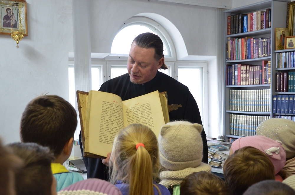 После отец Ярослав рассказал детям о приходе, показал им учебный корпус, в котором проходят занятия воскресной школы и Минского духовного училища, библиотеку.