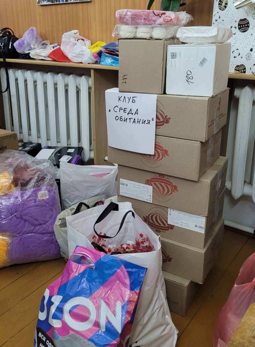 В завершение мероприятия организатор клуба "Среда обитания" Сергей Ероховец поблагодарил всех спонсоров и благотворителей, благодаря которым эта поездка стала возможной. Кроме концертной программы, участникам клуба удалось собрать и привезти спонсорскую помощь: для будущей комнаты фито-бара - блендер, миксер и две сушилки для овощей и фруктов, памперсы для лежачих пожилых людей, одноразовые простыни, средства гигиены, материалы для комнаты рукоделия. И, конечно же, сладости, конфеты и зефир.