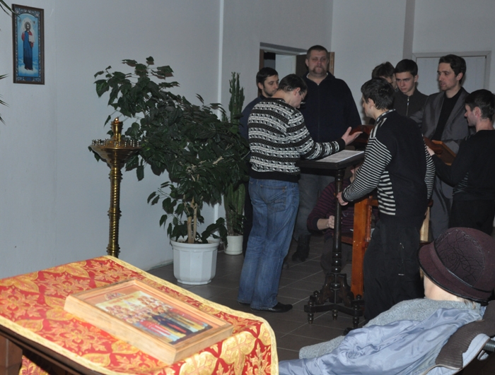 15 февраля послушание продолжилось. Ни снег, ни мороз не помешал молодёжи в этот день исполнять свой честной долг перед Богом. Ночью, на всенощной литургии, братчики плечом к плечу в единый глас славили истину Божью, и сердца их наполнялись радостью благодати Божьей. Бог учит нас творить правду, даруя шанс ко спасению.